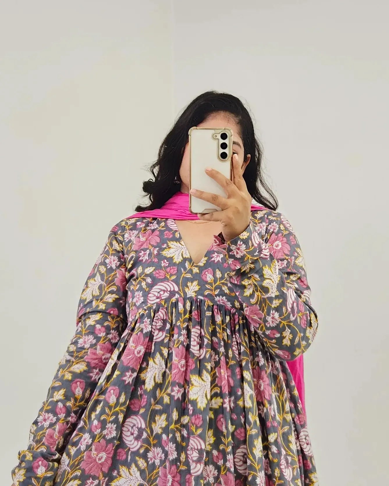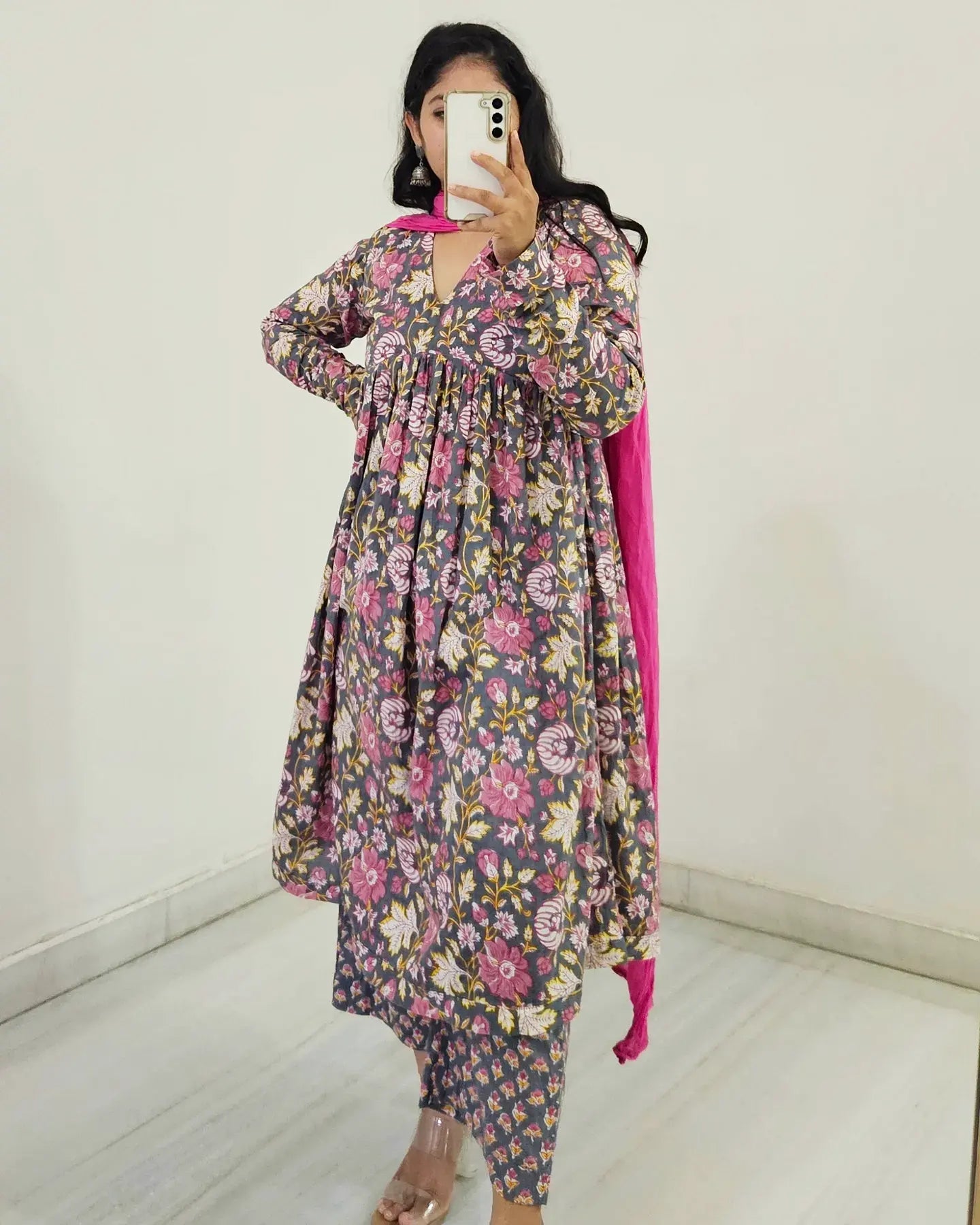 Type - Handblock Printed Anarkali Suit (3 piece set)
